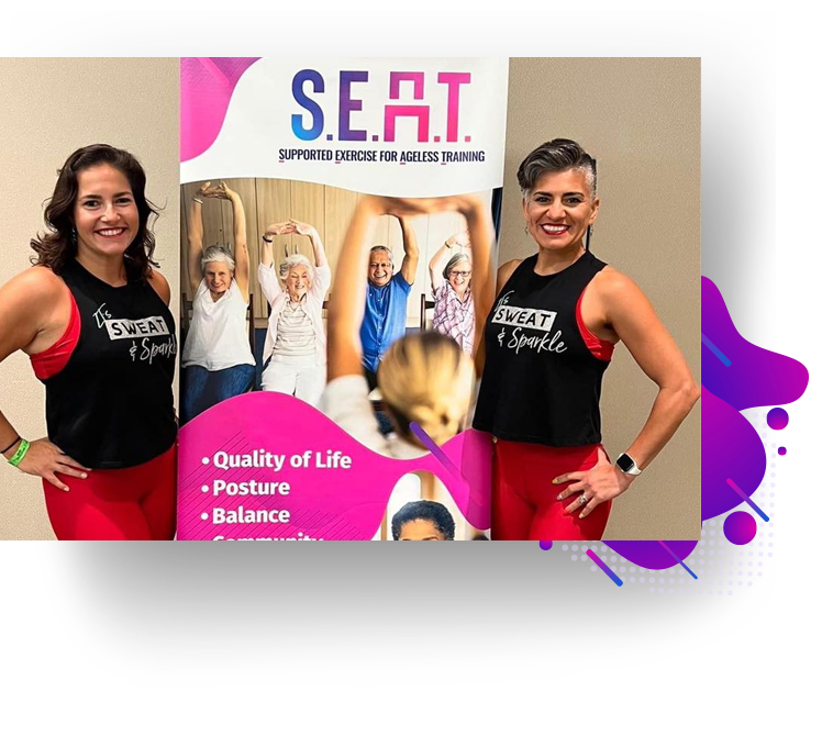 Every S.E.A.T. License include 2-Free comprehensive instructor certifications which includes 2 half price membership for the first year, coaching support to assist with launching, running and growing your older adult offering. Refreshing member experience every 12-weeks through our Autoship program, S.E.A.T. provides new choreography, new music, and new marketing to inspire this exceptional fitness community featuring: