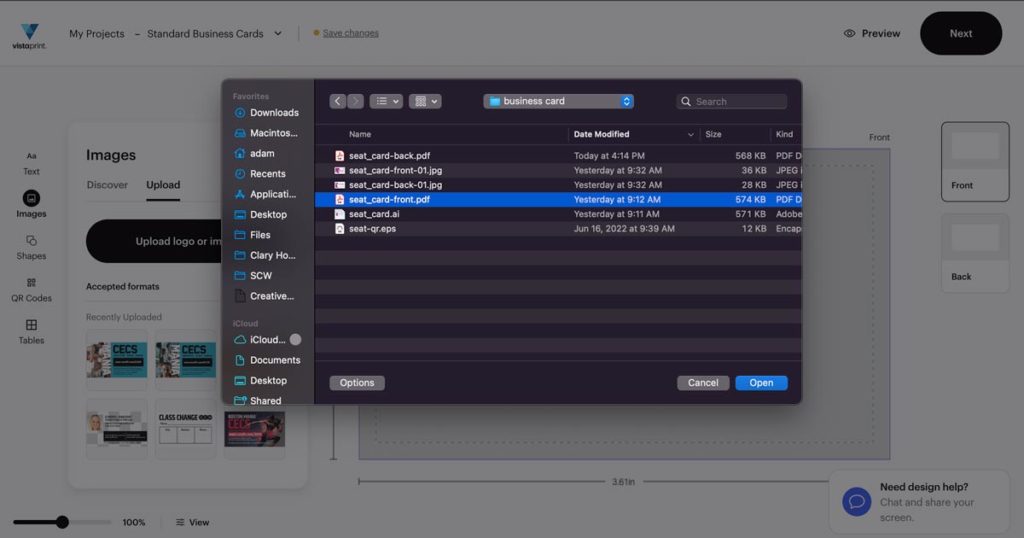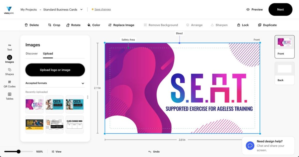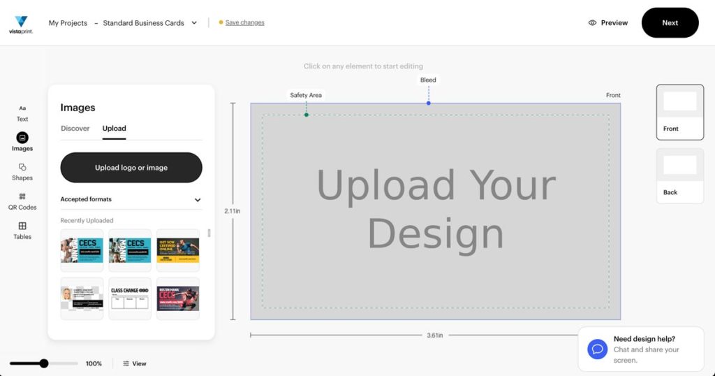 VistaPrint makes the process super easy. Simply choose the “Upload Your Own Design” option and follow their step by step instructions. We’ve included some images below to help you along the way too.